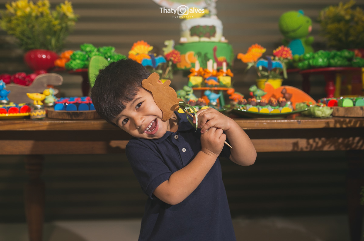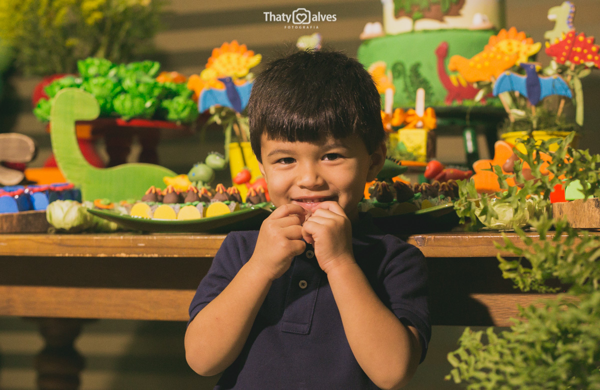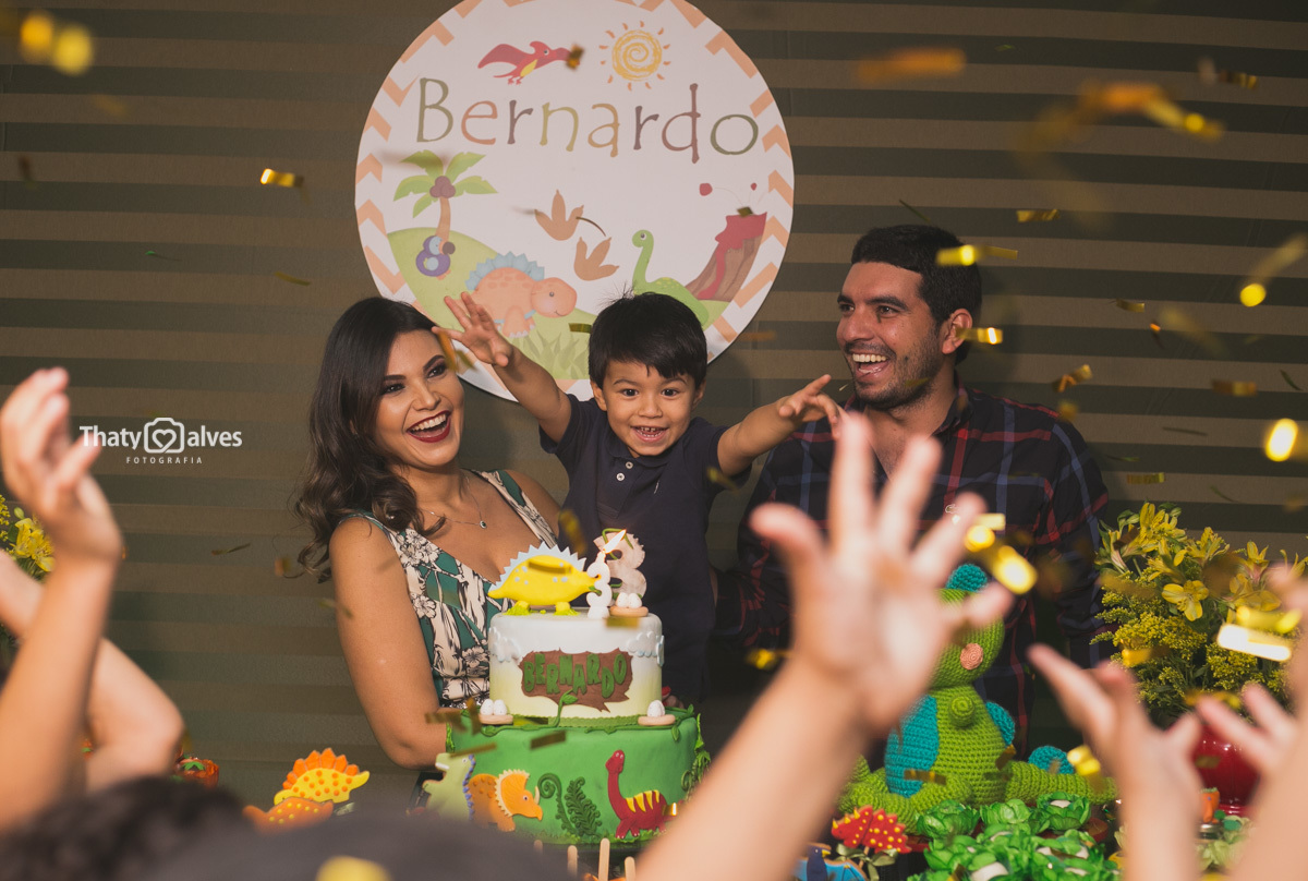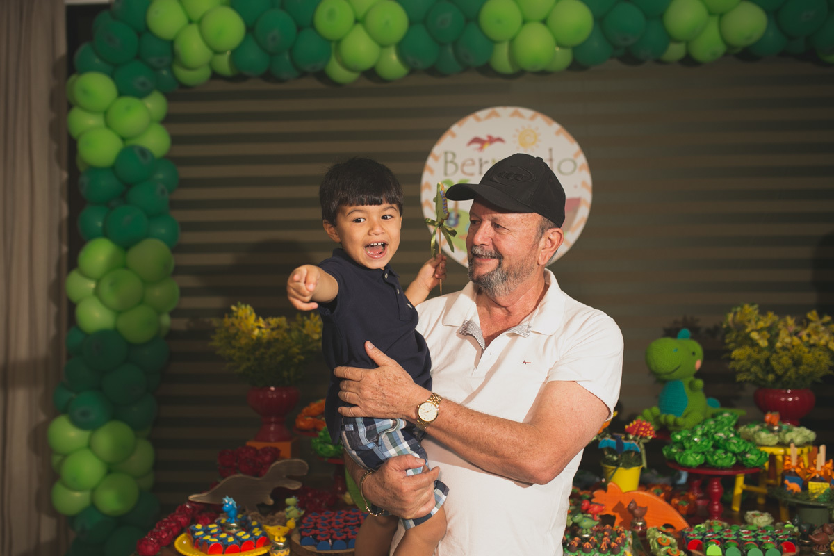 Quando a criança cresce, ela começa a ir às festinhas dos primos e amiguinhos, e começa a pedir a sua própria comemoração Bernardo era apaixonado pelos dinossauros, pelo mundo histórico aonde eles passaram. Hoje é a minha festa? Essa é a minha festa? foram as perguntas que ele fez, e sorrindo curtiu ela no começo ao fim. Vamos reviver um pouquinho dessa alegria fantástica .