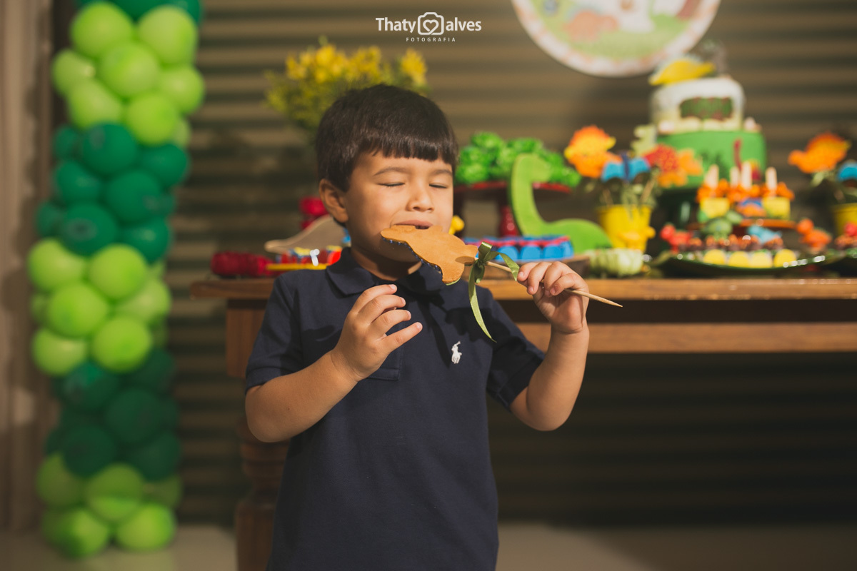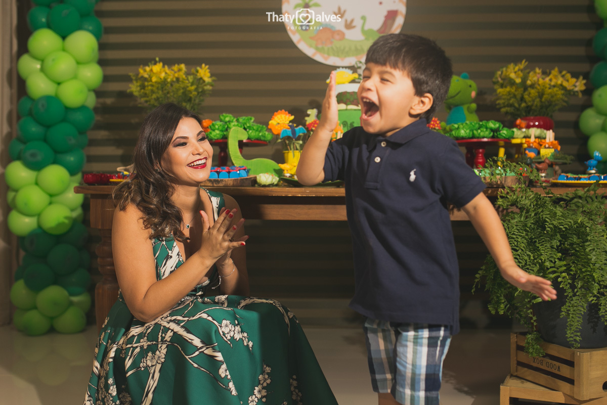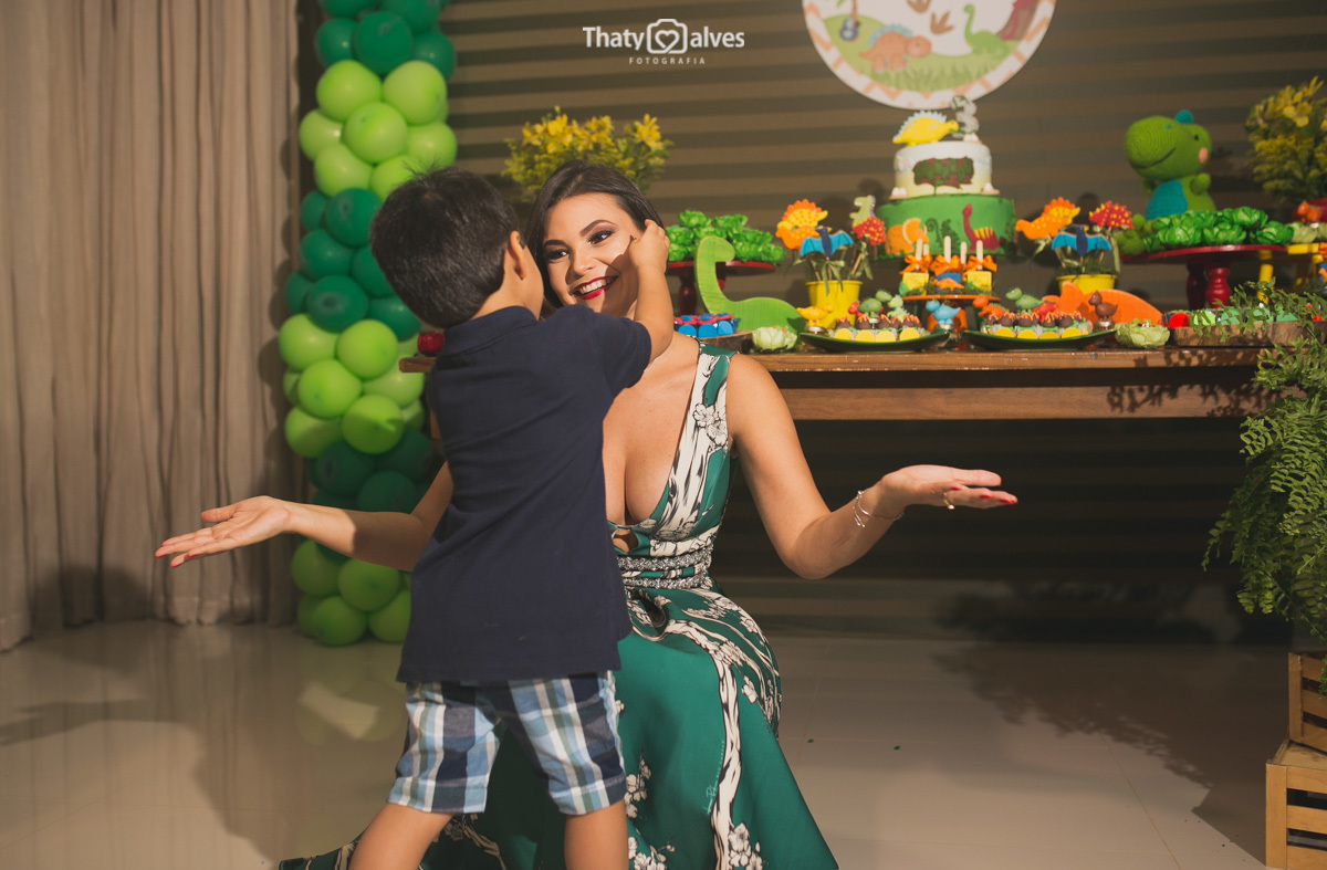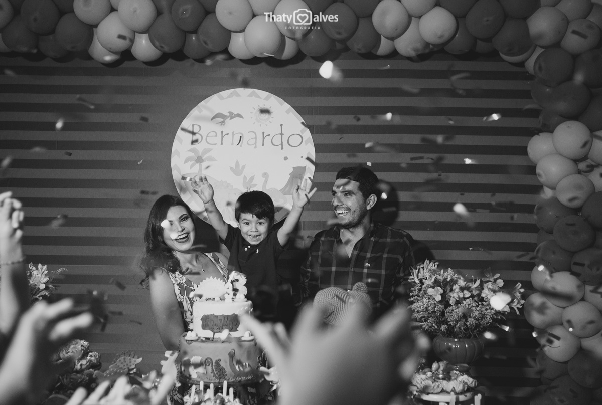 Quando a criança cresce, ela começa a ir às festinhas dos primos e amiguinhos, e começa a pedir a sua própria comemoração Bernardo era apaixonado pelos dinossauros, pelo mundo histórico aonde eles passaram. Hoje é a minha festa? Essa é a minha festa? foram as perguntas que ele fez, e sorrindo curtiu ela no começo ao fim. Vamos reviver um pouquinho dessa alegria fantástica .